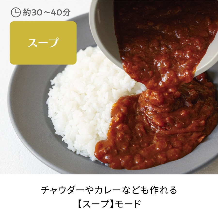 新搭載【たべるスープ】モードにより、ごろごろ具材を楽しむレシピにも対応。