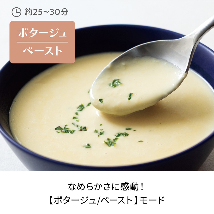 全自動の賢いコントロールにより、驚くほどなめらかな口当たりのスープに仕上がります。
