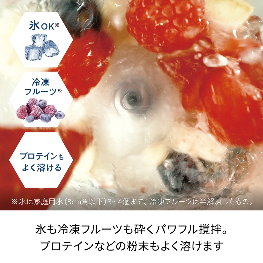 ※家庭用氷(3cm角以下)3~4個まで。冷凍フルーツは半解凍してご使用ください。
