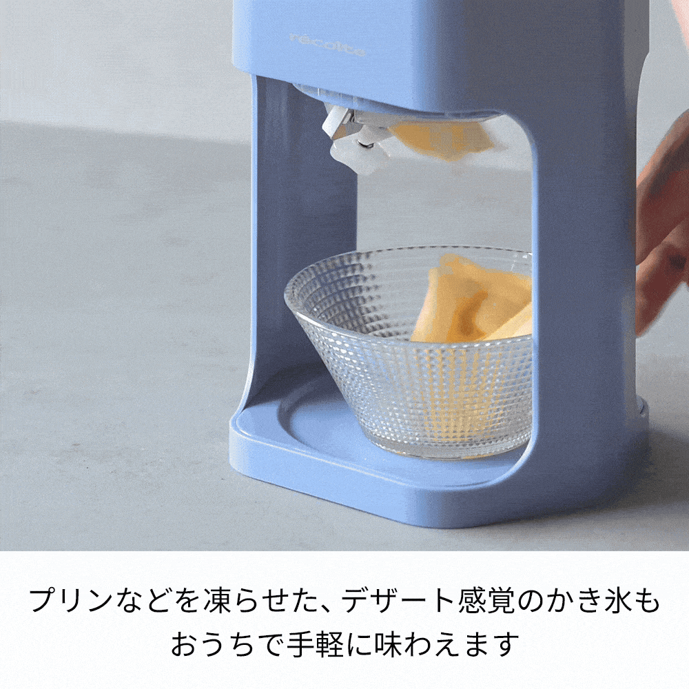 レコルトの電動かき氷器なら、冷凍庫で作ったバラ氷はもちろん、市販の冷凍フルーツもサッと削って、いつでも手軽にかき氷が楽しめます。